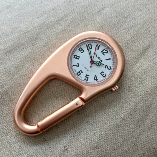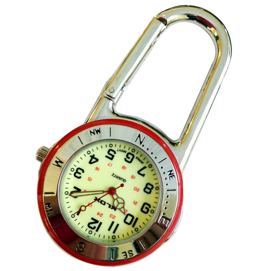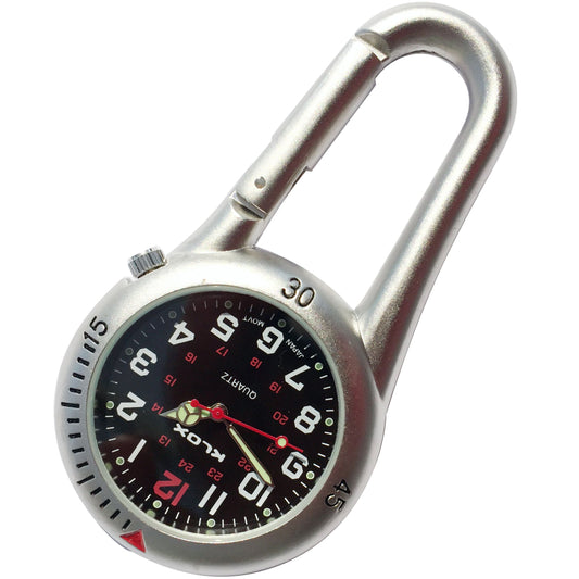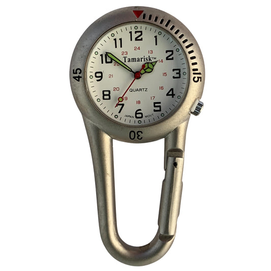 Carabiner Clip-On Watch- Silver with Glow Dial