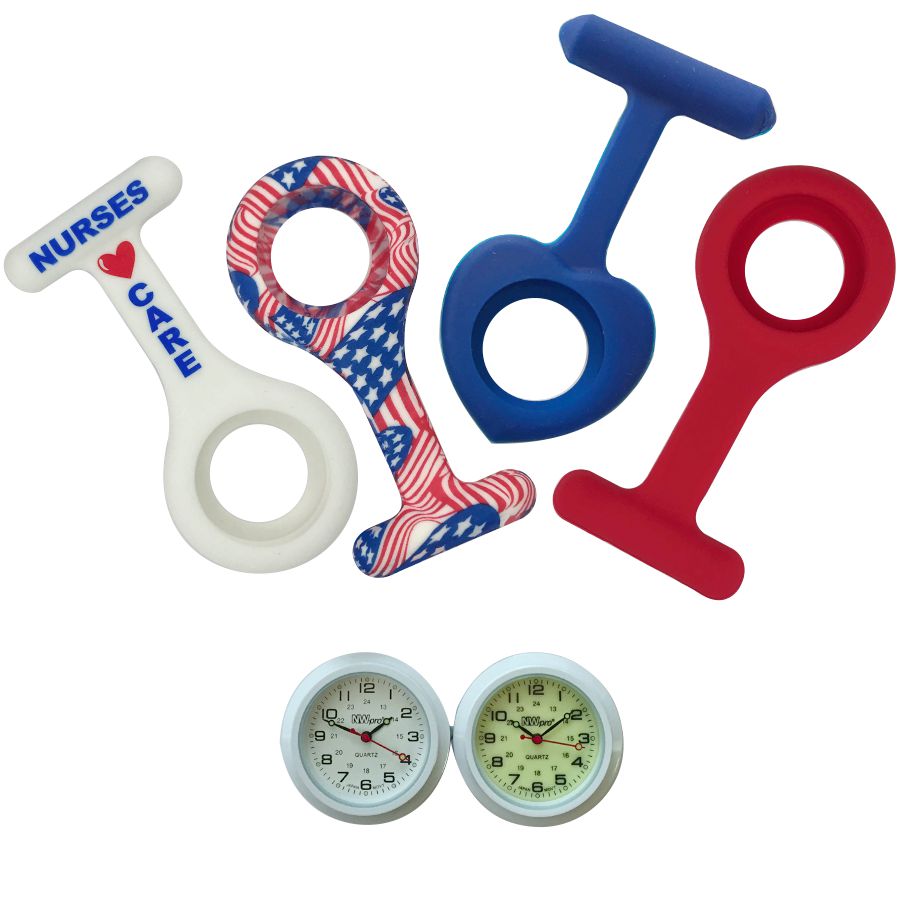 Nurses Lapel Watch Silicone (Infection Control) 4 Pack - Red, White & Blue Collection