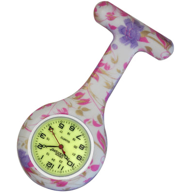 Silicone Pin-on Nurse Watch - Floral Pattern - Luminescent Dial
