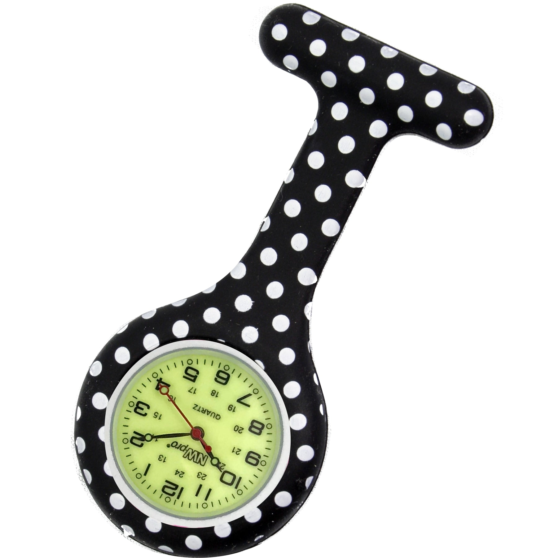 Silicone Pin-on Nurse Watch - Polka Dot - Sweeping Luminescent Dial